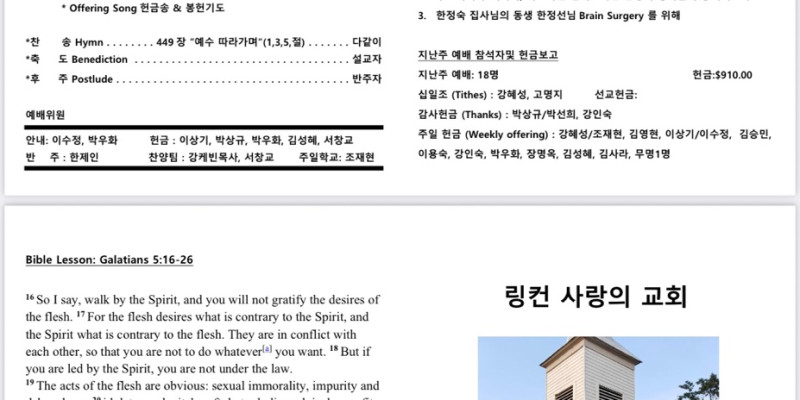 6월 15일 주일 주보 페이지 정보 작성자 : 담임목사 작성일 : 2025-06-15 조회수 : 174 목록 본문 주일 예배 주보입니다. 이전글6월 22일 교회주보 25.06.24 다음글6월 15일 주일 주보 25.06.15 LIST